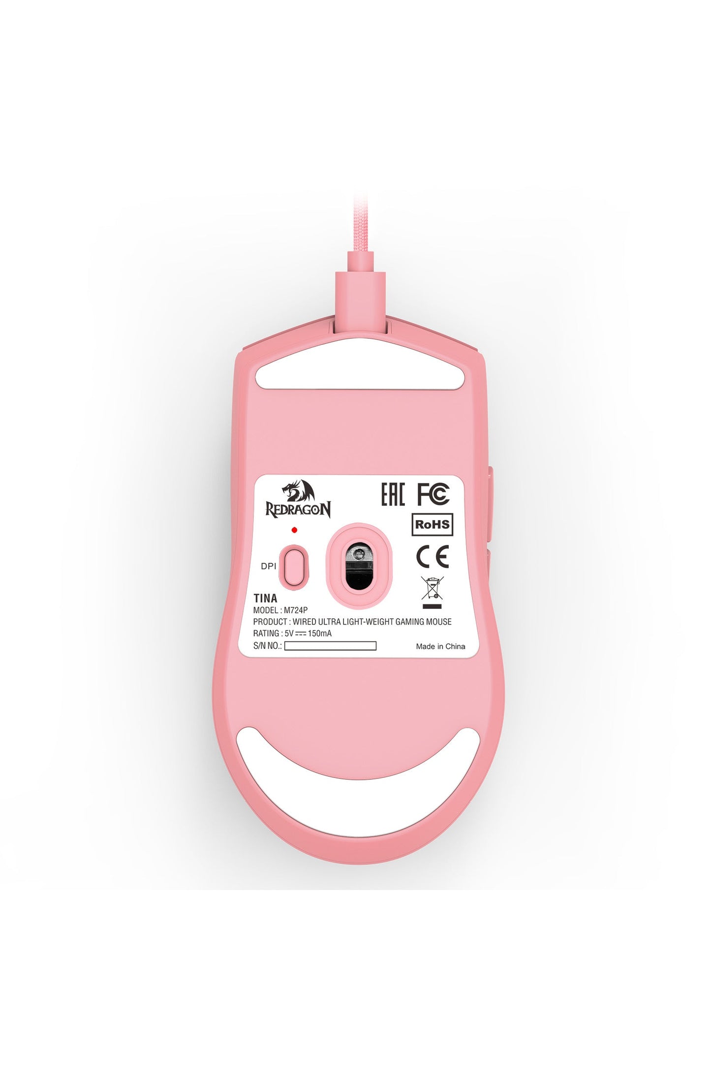 Wired gaming mouse, pink body, (3327 sensor), 220IPS, 30G ACC